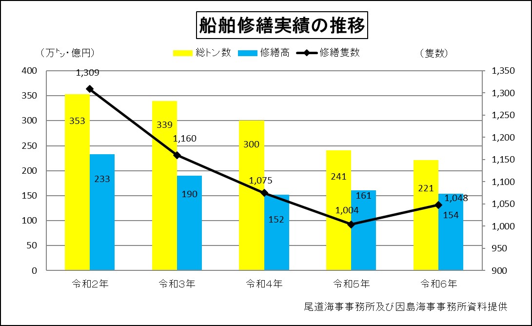 令和6年の修繕実績は、1,048隻・221万総トン数です。