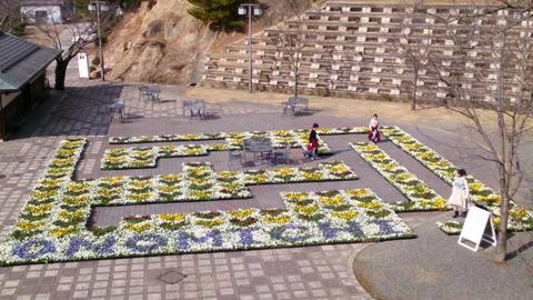 1月11日、千光寺公園ふれあい広場にビオラを並べた「フラワーカーペット」が登場しました。ボランティアの方を中心に、みなさん協力して並べました。少し上から見ると「ONOMICHI」の文字が見えますよ。