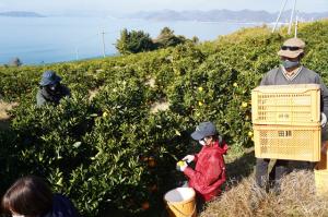 農繁期に人手が不足する柑橘農家を、長期滞在する観光客が手伝う新しい取り組み「おてつたび」が瀬戸田町でスタートしました。 第1弾は11月27日~12月15日の期間に実施され、20~40歳代の4人が参加し、収穫作業などを手伝いました。旅行者は宿泊施設を低価格で利用できるほか、作業の報酬も支払われます。