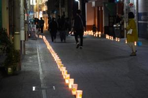 3月12日(土曜日)、尾道本通り商店街絵のまち通りで「絵のまち春の灯りまつり」が行われ、装飾されたおよそ1000個のぼんぼりで商店街の路地などが照らされました。
